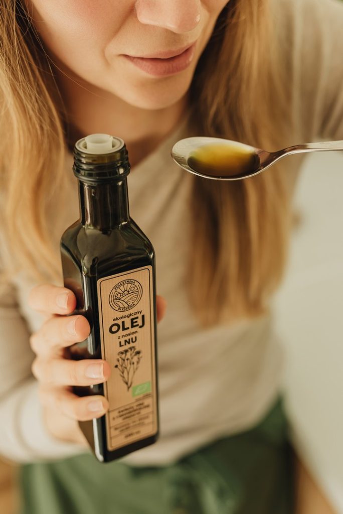 Łyżka oleju lnianego świetnie komponuje się z owsianką, jogurtem lub koktajlem.